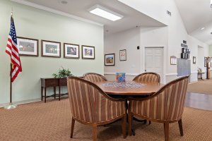 The staff are well trained, courteous, and caring. Level of excellence of the staff is shown to the families as well, as they consistently keep the family updated on their loved ones when necessary. The rooms are spacious with convenient laundry room access in every hall. There are daily activities and social events that the seniors can attend as well as fitness that is senior-focused. The walking paths and garden are well maintained. Not to mention, military veterans are welcomed and appreciated.